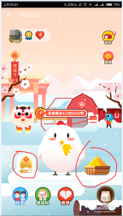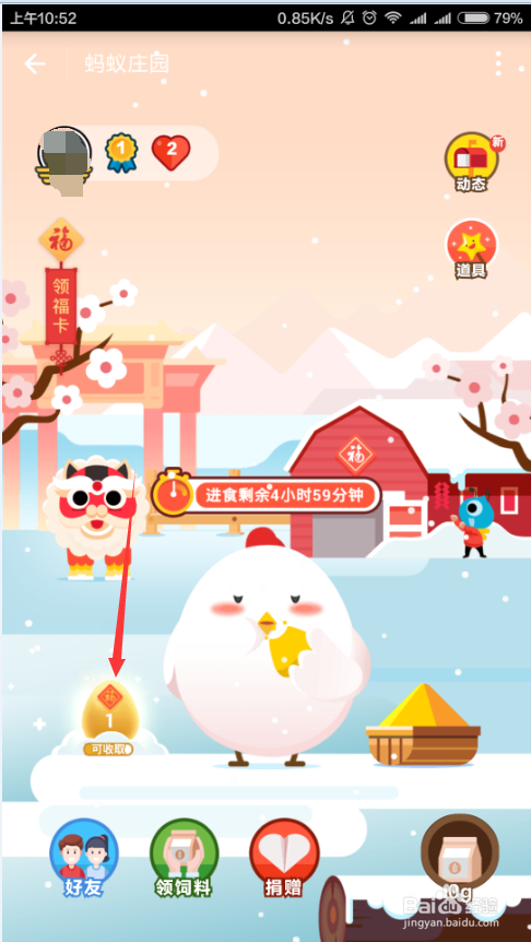 然后点击收金蛋进入蚂蚁庄园页面,如下图所示,这个就是一个休闲的小游戏,不需要什么复杂的操作