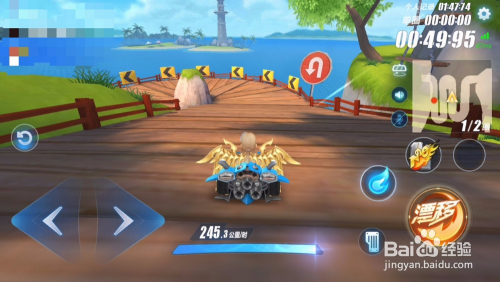 过弯桥之后,我们会飞入有一弯水的地方,然后我们要向左漂移。记住,这里是重点,我们在向左漂移之后,为防止撞到桥,我们需要连续向做漂移【第二次漂移注意调整好车头。】