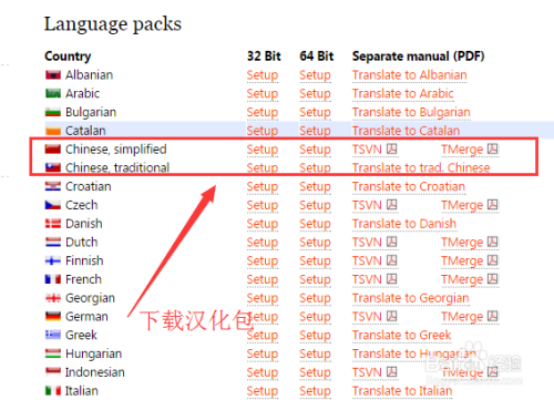 当然还可以下载汉化包,往下面滚动鼠标,看到Language packs这个就停下来,点击如下图所示红色框框中的链接下载即可