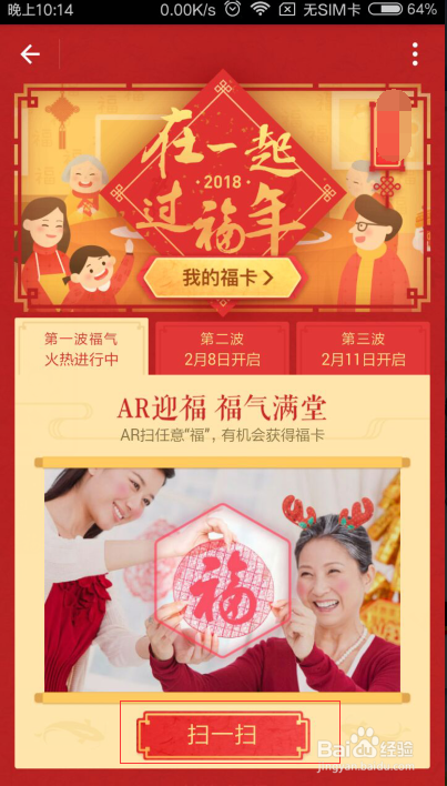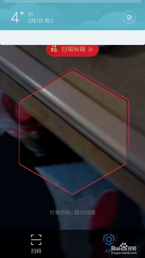 下面就是找到福字,手机对准开扫。找不到福字的可以手写(福)