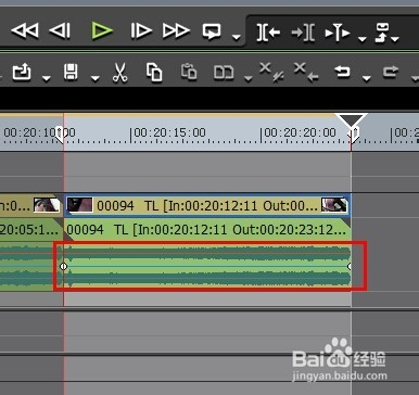 红线添加关键点,然后拉动末端的自动关键点,降到最低,就完成声音的淡出。