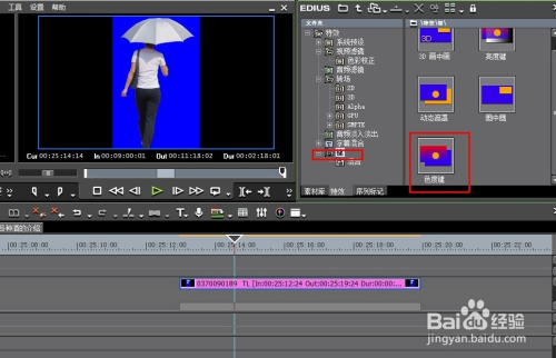 EDIUS里抠像的位置:特效——键——色度键。