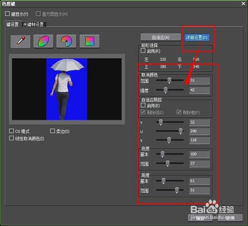 打开属性对话框里面,我们可以调整抠像的颜色。