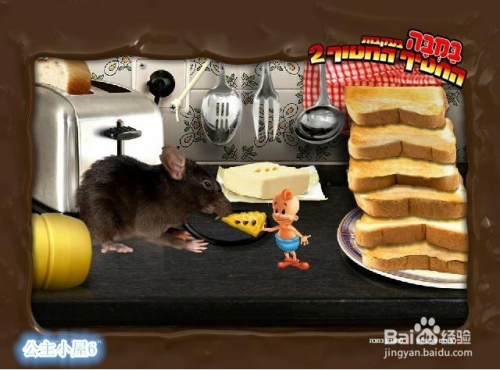 再点击面条,将叉子放下来,使其在纸板上扎几个眼。将纸板拿下来递给老鼠。老鼠跑走。