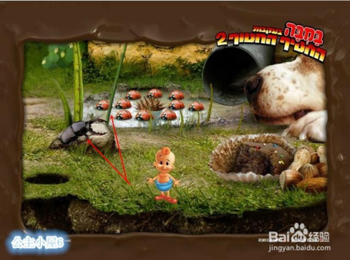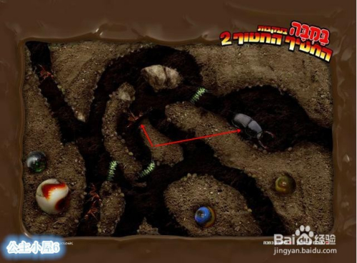 来到右边,点击旁边地上,视角来到地下,点击三个小虫子,先点第一个虫子,再点第三个虫子 ,再点第二个虫子,最后再点第三个虫子。根据虫子的行走。使蚂蚁碰到甲虫。甲虫出来到地面上。