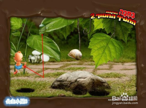 回到左边将茎干放到左边植物上,爬上去,使用树叶上的液体滴下一滴,将洞口堵住,使蚂蚁将蜗牛带走,将右边洞口堵住。