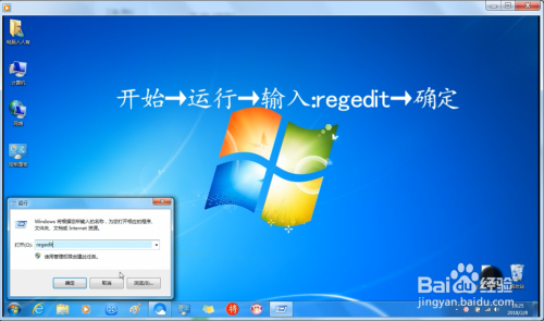 开始→运行→输入:regedit→确定→打开注册表。