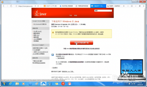 同意并免费下载(同时提示了谷歌浏览器不支持JAVA的通知→可以查看更多信息)