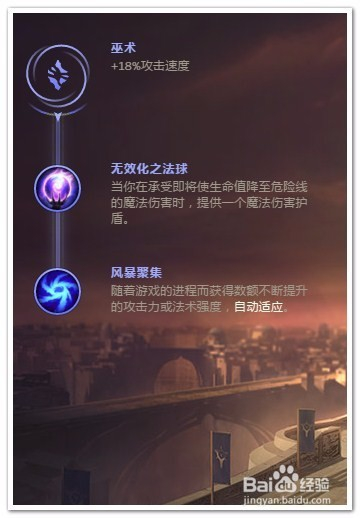 选择“巫术”作为“副系符文”(强化技能和资源控制)。副系符文1里选择“无效化之法球”,为飞机增加又一保命技能;副系符文2里选择“风暴聚集”提高飞机后期伤害能力。