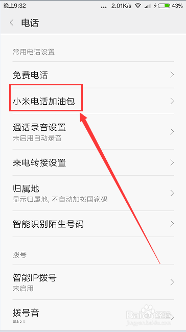 因为我购买了加油包,所以显示出来了。如果没有购买过的可以点击一下设置,今天到通话设置的界面。。