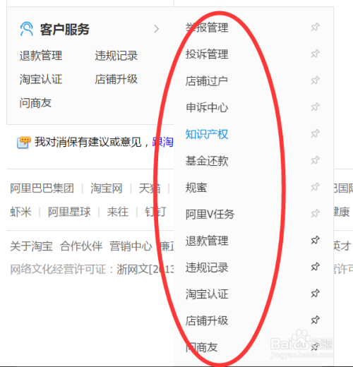 我们将鼠标指在卖家地图上,出现的选项中,我们选择左下角客户服务中的消费者保障服务。