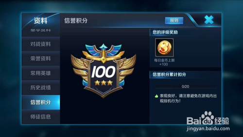 要想提升自己的信誉积分,就要认真对待每场对局,如果没有了挂机或者掉线现象,信誉积分将会自动提升上去,现在看到小编的信誉积分又回到了100