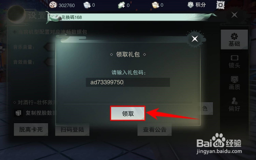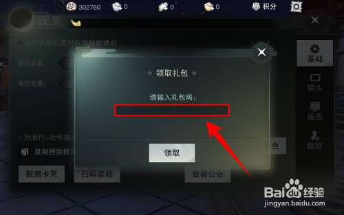 这时就会跳出一个礼包领取页面,在页面图示位置输入礼包兑换码。