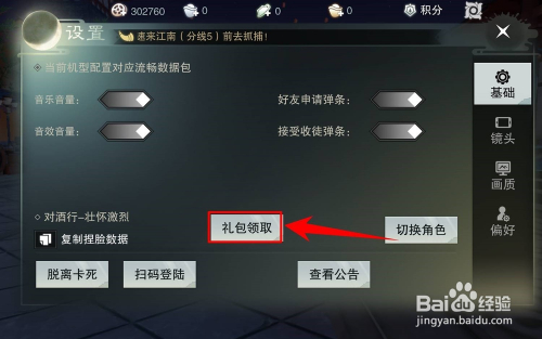 进入设置页面后,在右侧的选项卡中选择【基础】,进入到基础设置页面,在下方点击“礼包领取”。