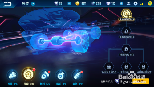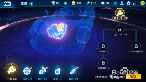 首先我们就从引擎改装,引擎是发动机的核心部分,所以,我们可以看出引擎在车子里的重要性。而且在此车中我们改装引擎,就改装右边分支即可,改为托马斯引擎,改到+9