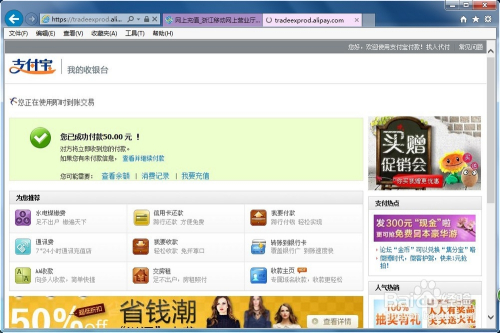 充值成功后,支付宝页面及移动网站提示信息如下图所示!
