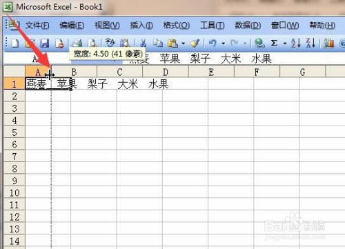 如图,我们准备每个单元格里放两个字,所以拉动到燕麦二字的后面就放手。