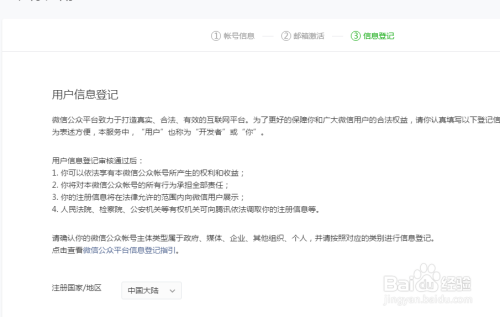 邮箱激活成功,进入到用户信息登记页面,选择主体类型,如图