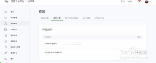 在小程序登录中心,点击用户身份,在选择开发设置,这里有个AppID是新建小程序项目时使用的