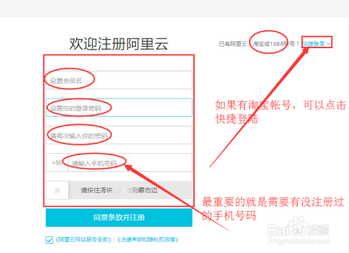 如果有淘宝或者支付宝那就请点击右边的快捷登陆