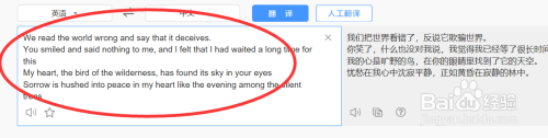 它的翻译速度是非常非常快的,粘贴之后立即会出现翻译的结果,这个方法也同同样适用于英文,我们可以把中文复制过来试试,在选择之前我们需要先换下中英。如下图