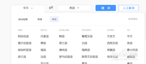 当然这里不仅仅是中英的翻译,如果你需要翻译更多语言直接点击语言栏就可以了。翻译句子的时候你选中对应的结果会对应你当前的句子。