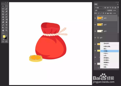 选择钢笔工具,勾勒福袋的褶皱形状,利用深色来营造