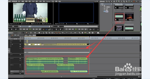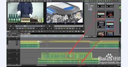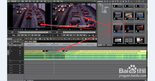 打开EDIUS,把我们的所有素材导入EDIUS,记住:待修改的视频也要作为素材导入进去。其他的新的素材也要分门别类得放置。