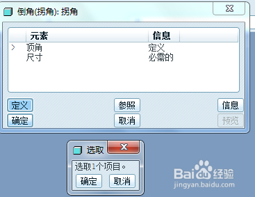 系统弹出如下的“倒角(拐角)”定义框和“选取”对话框。