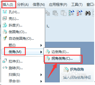 击菜单栏的“插入”-“倒角”-“拐角倒角”,如下图。