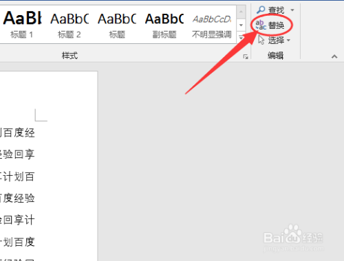 在【开始】选项卡中点击【编辑】-【替换】