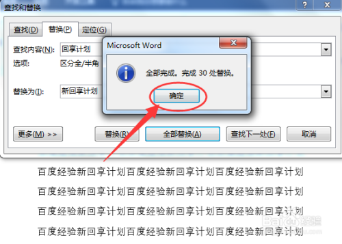 点击全部替换后会出现一个小窗口,点击【确定】