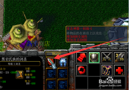 然后,传送到左下角的装备店。购买四件新手装。分别升级到max。