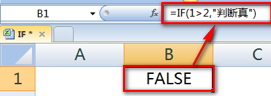 其中判断1大于2结果是假也就是FALSE,所以单元格返回第三参数文本“判断假”。