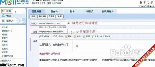 QQ邮箱格式书写和发送和163的邮箱基本上是一样的,先登录https://mail.qq.com/,也可以直接从QQ面板点邮箱图标进入,然后如下图的步骤1,2,3,4.。