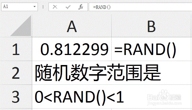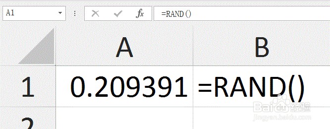 如下图所示,在单元格中输入=RAND(),回车后单元格即返回了一个随机数字。