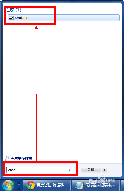 进入Windows命令提示符程序。Win7系统直接在开始菜单下方的输入框中输入“cmd”或“命令提示符”就可以进入了。XP系统需要在开始菜单中找到运行(或按下快捷键R),在运行对话框中输入cmd,然后单击“确定”按钮。
