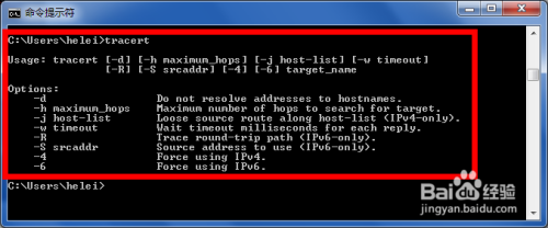另外,tracert中还有如“-j”、“-r”、“-s”、“-4”、“-6”等命令,其用法都可以在命令行中输入命令“tracert”直接查到,这里就不一一赘述了。