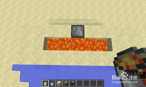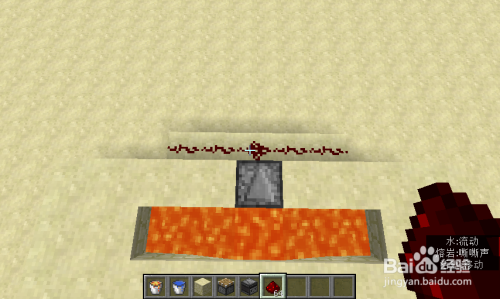 下面就是红石刷石机的教程.,两边放上水中间放上岩浆。