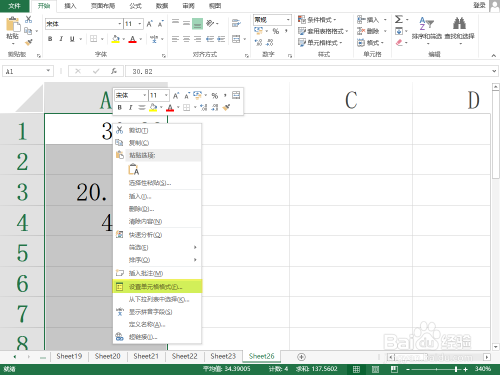 右键单击选中的单元格区域,点击“设置单元格格式”按钮,打开“设置单元格格式”对话框。
