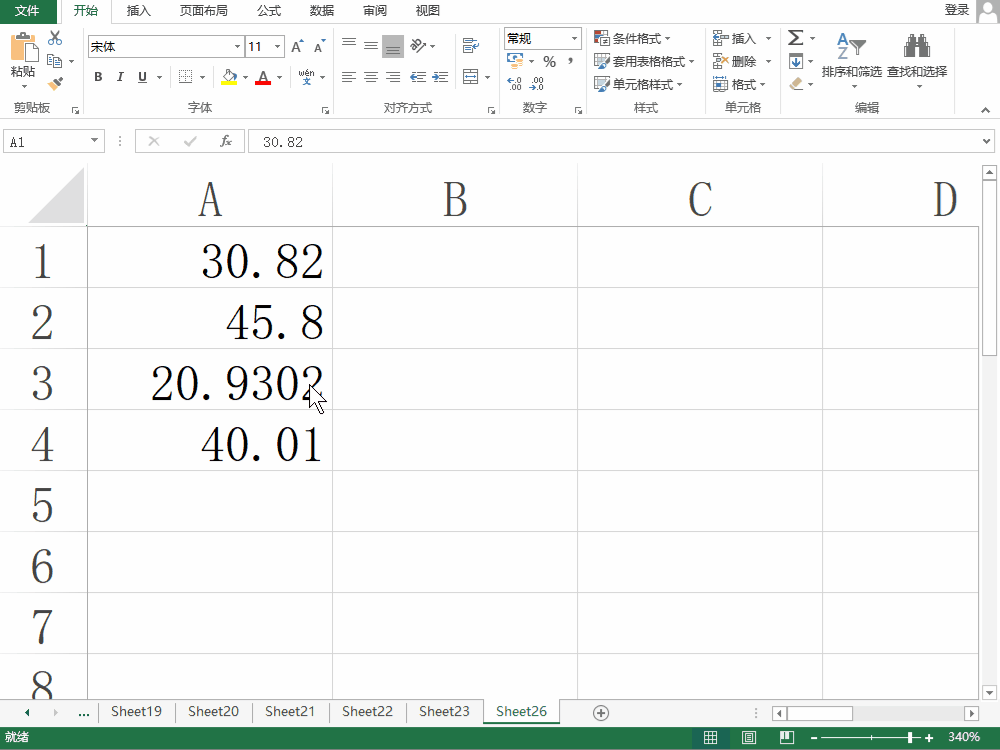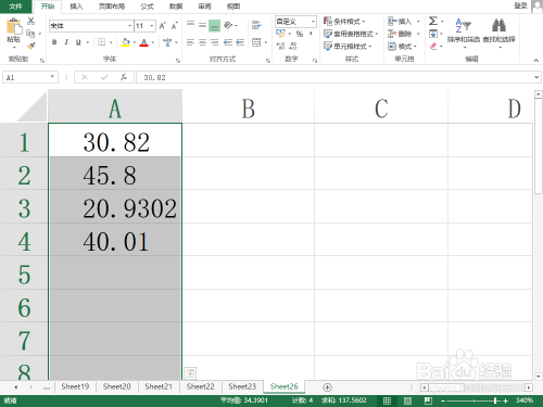 可以看到Excel工作表中的小数已经按照小数点对齐。