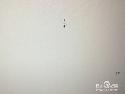 3.这样,在空白word文档中便出现了分数式,在输入框中打入数字即可。例如:四分之三。