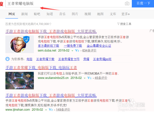 首先,我们需要下载一个模拟器,找到百度搜索引擎,在百度搜索引擎上输入王者荣耀电脑版。会出现很多相关的内容。