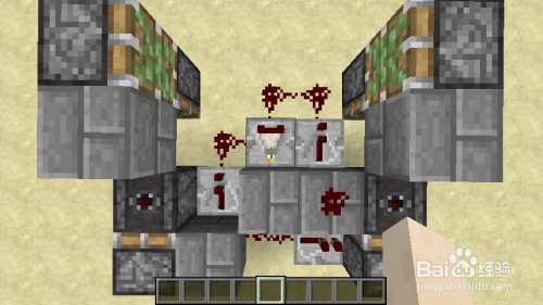 在另一个单独的活塞上放上粘液面相对的粘性活塞,在放好的粘性活塞的侦测器的那一面放上方块。