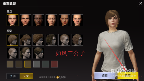 这时会进入到【重置外观】页面,接着玩家点击页面下方的【女】按键。