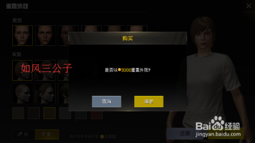 这时会弹出【购买】对话框,点击【确定】按键,这时只要玩家拥有3000金币,这样就能成功更改角色的外形了。