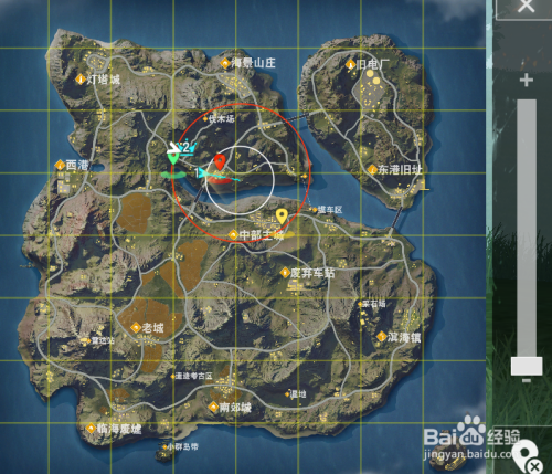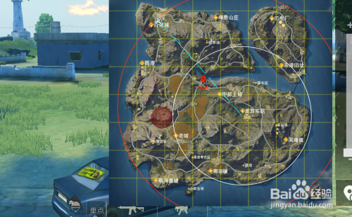 一开始,第一个圈的范围是非常大的,这个时候我们可以尽量的去靠近这个大的圈子的中部区域,下一个圈的可能性就很大了,其实落地的时候也是一样,你如果在地图的边缘,肯定要找载具,安全区肯定在地图的中部左右。