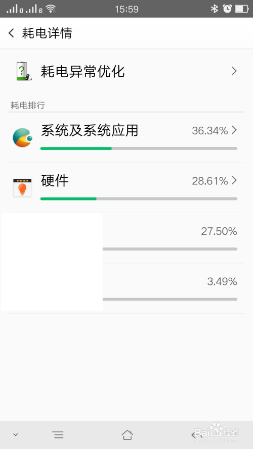 点击耗电详情,进入到耗电详情页面,这里显示电量利用环境,如图