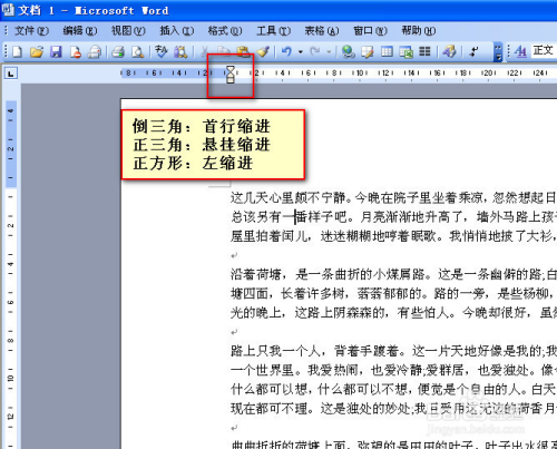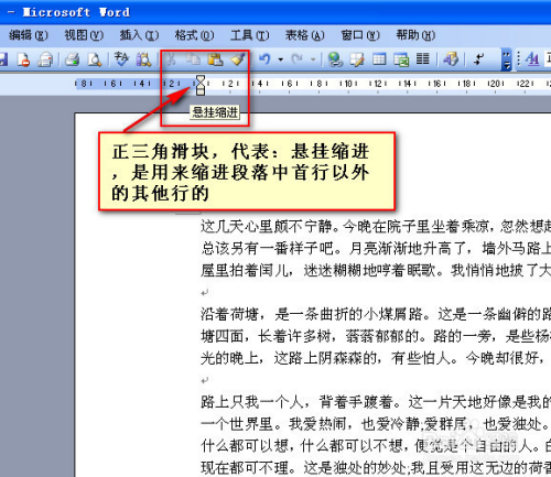 正三角:吊挂缩进,用于调整光标地点段落除首行以外的其他行的缩进