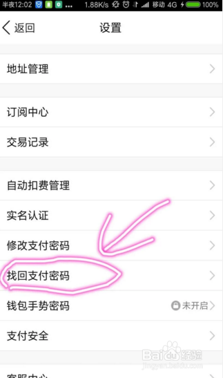点击【找回付出密码】